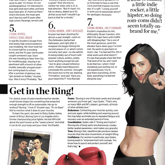 Alexis was able to intern with Women’s Health Magazine and assist on two photoshoots. Below are scans of tear sheets from the November cover photoshoot with Krysten Ritter and an athleisure photoshoot that Alexis assisted on as an intern.